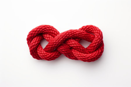 Close-up of textured red rope knots in detailed pattern. That the image is generated using AI.