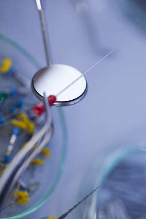 Close up detail of dentist tools for healthcare and surgery.
