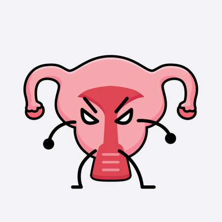 Vector Illustration of Uterus Character with cute face and simple body line drawing on isolated background