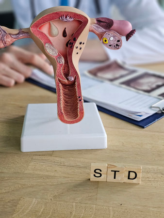 A gynecologist shows signs of STD. Sexually transmitted diseases in women concept