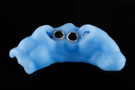 dental base for crowns in the chewing honor of the jaw, shot from above on a black background