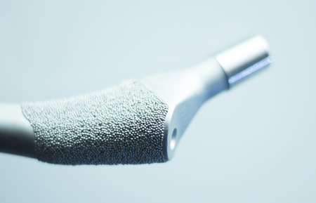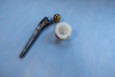 Orthopedics and Traumatology surgery hip replacement surgical titanium metal implant close-up isolated.