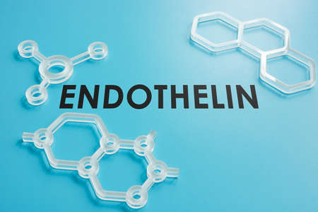 Endothelin word on the blue surface and molecule models.