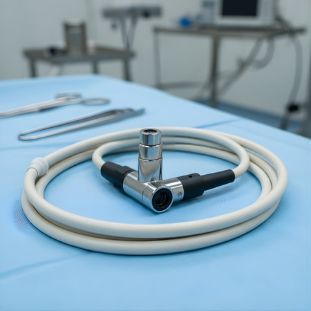 Modern medical endoscope displaying advanced design and technology for healthcare and diagnostics in a clinical environment.