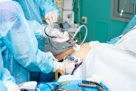 Surgeon operating a patient in an operating room at the hospital.