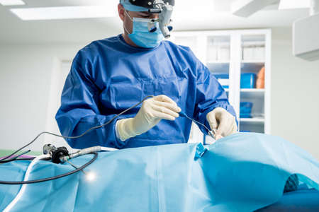 surgical operation with laparoscopic equipment in surgery room