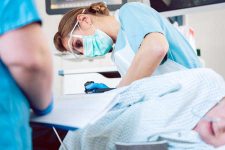 veterinarian doctor in operation room for laparoscopic surgical (art lighting shot)