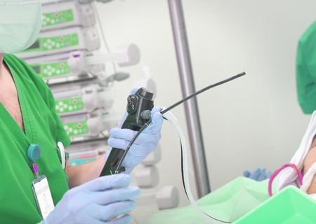 Endoscopy at the hospital. Doctor holding endoscope before gastroscopy