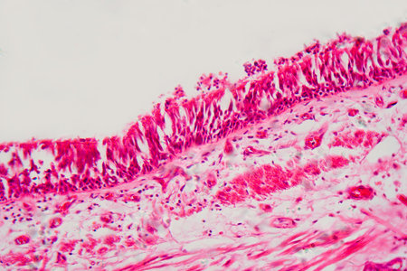 Characteristics Tissue of Olfactory epithelium Human under the microscope in Lab.