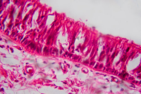 Education anatomy and Histological sample Simple columnar epithelium Tissue under the microscope.