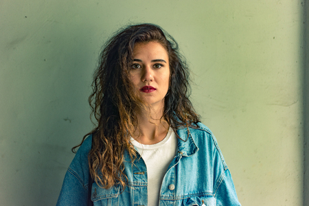 Portrait of a beautiful sensual young woman with curly hair.