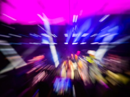 Abstract motion blur effect. Bokeh lighting in concert with audience.