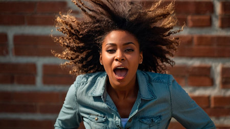 Intense Expression of Emotion by African American Woman With Wild Hair.