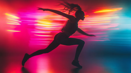 Speed and movement captured during a dynamic sprint in vibrant colors showing athleticism and energy in a minimalist setting