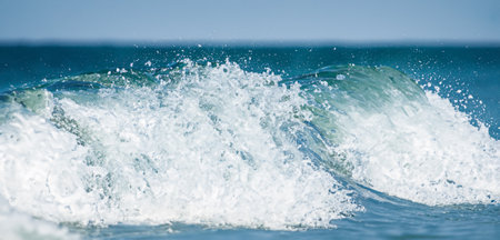 Powerful wave breaking in deep blue ocean