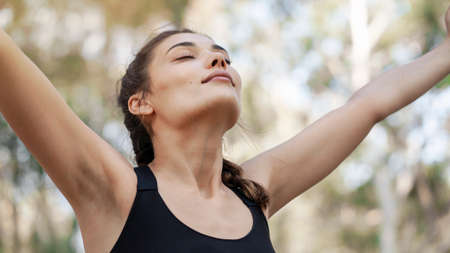 Young woman with open arms