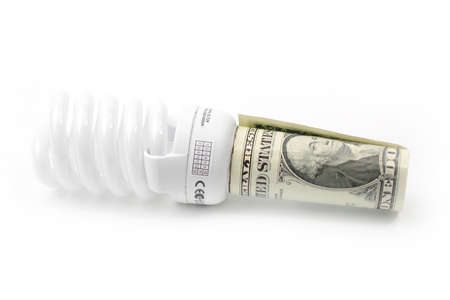 Energy saving lamp isolated on white background with money