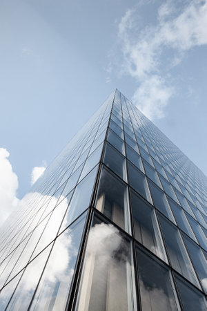 Grey sky reflected in the clean windows of the business center in Wroclaw, Poland