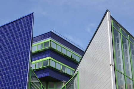 Fragment of a modern building. Modern architecture design. Structural glass facade of modern office building. Abstract architecture fragment.