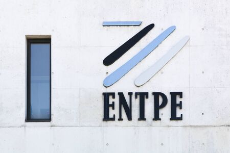 Vaulx en Velin, France - June 13, 2019: ENTPE logo on a wall. ENTPE, National School of Public Works of the State, is an engineering school part of the French Grandes Ecoles