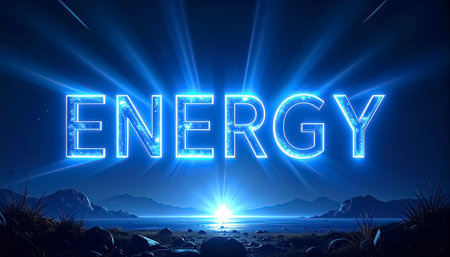 Energy word in blue neon light on background