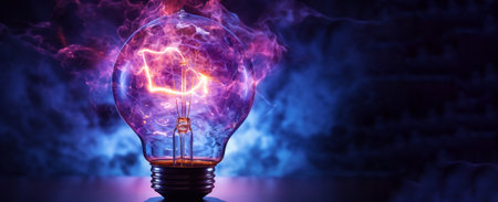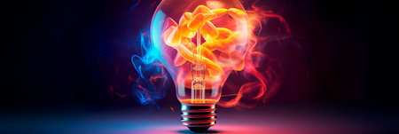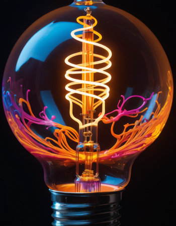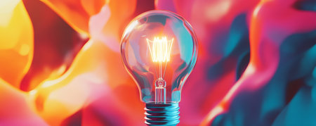 Illuminated light bulb against vibrant abstract background, creativity and innovation concept