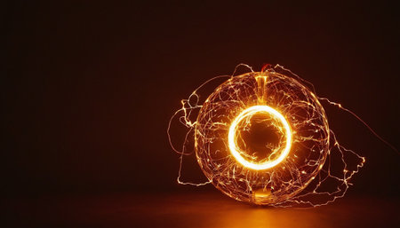 Electricity in the form of a circle on a dark background.