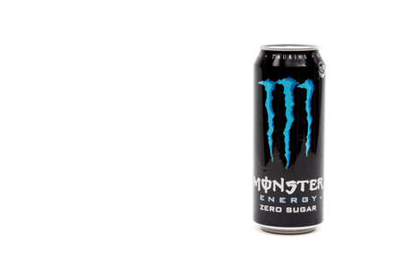 London, United Kingdom, 14th October 2020:- A Can of Monster Zero Sugar Energy Drink Isolated on a white background