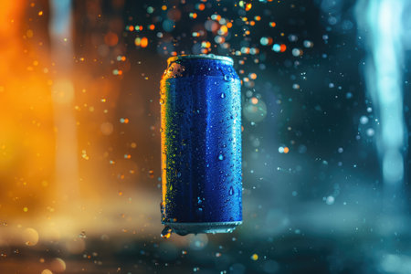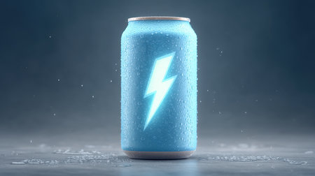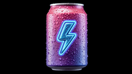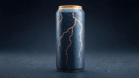 A stylish can featuring an electric lightning design with moisture droplets, creating a captivating image for marketing and beverage product promotions.