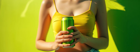 A neon can of soda covered in condensation stands out against a moody light backdrop.
