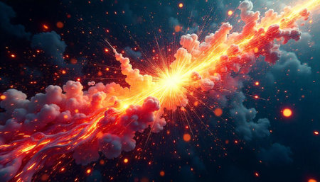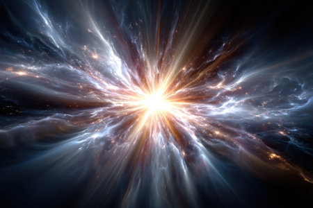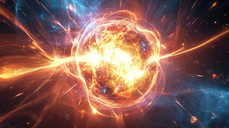 An abstract representation of a bright explosion of energy and light, capturing the beauty and dynamism of cosmic phenomena with vivid colors and radiant textures.
