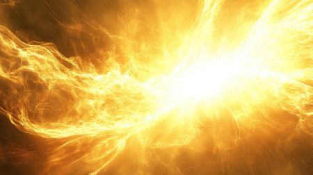 Bright yellow center radiates outward in intense, fiery tendrils, illuminating dark background with dynamic, electric energy and vibrant, glowing lines.