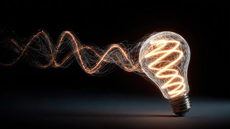 Capture the essence of innovation with this glowing 3D lightbulb showcasing electric swirls. Perfect for designs that emphasize creativity and modern aesthetics.