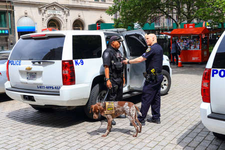 New York City, USA - June 8, 2017: New York Police K-9 unit providing security in Manhattan