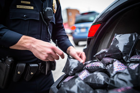Police officer rejecting bribe near car outdoors, closeup