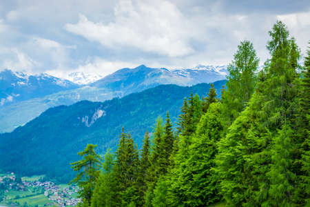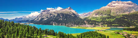 Panoramic landscape of the Engadine valley on the Swiss Alps