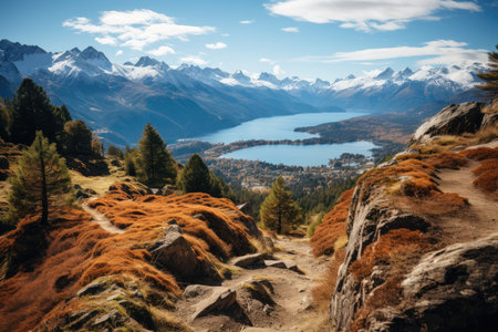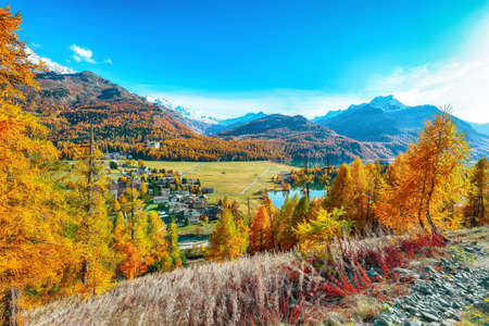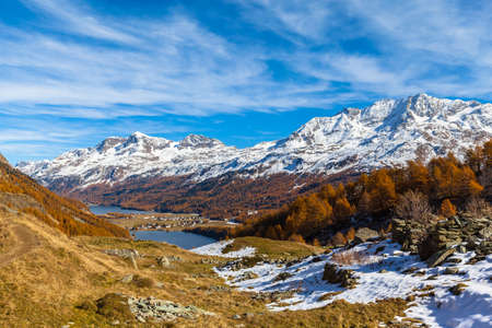 Beautiful swiss autumn landscape, in St. Moritz, Maloja.