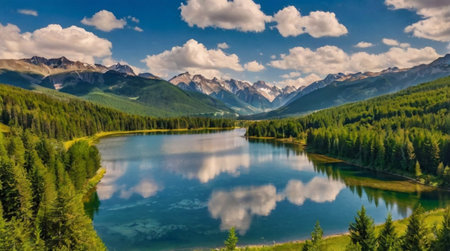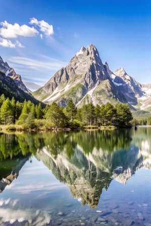 Tranquil picture of lakes and mountains, summer scenery of the Alps