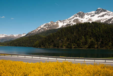 Maloja region - collection of beatiful lakes, mountains and road connecting Switzerland and Italy