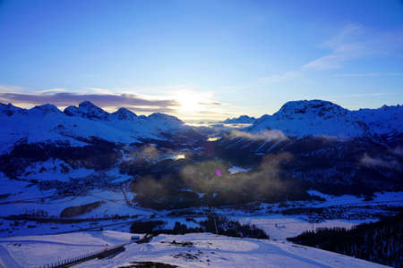 Saint Moritz, Switzerland, February 21, 2023 Panoramic view over the city center with a fantastic alpine scenery