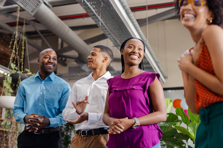 African business team on briefing, discussing ideas for new startup or project.