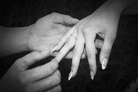 picture of man putting wedding ring on woman hand