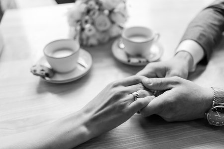 Close up of a hands of couple just engaged