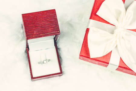 jewelry ring box and white roses. Wedding, Love, Valentines day, Happy Birthday concept