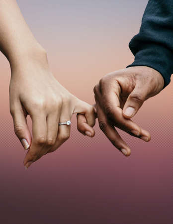Close-up image of a young loving couple holding hands