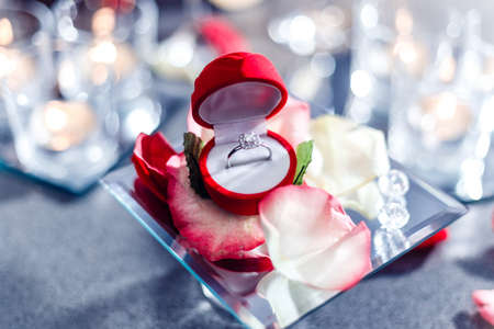 Engagement ring piece of jewelry, romantic relationship, decision to get married, precious gemstone, diamond, love, bride and groom couple ceremony box luxury