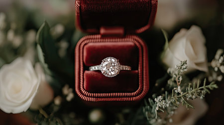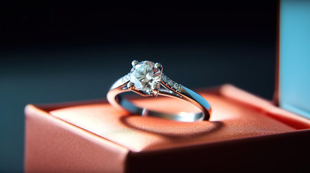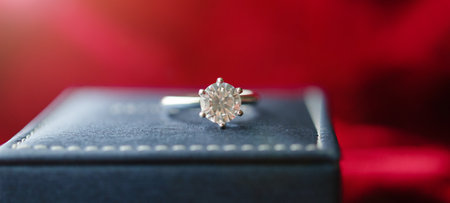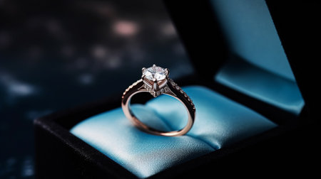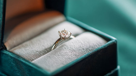 Elegant diamond engagement ring displayed in a luxurious velvet box showcasing beauty and romance concept
