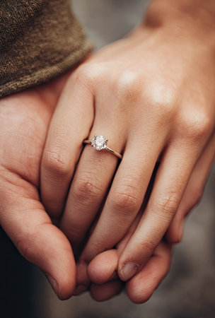 engagement ring on woman's finger, closeup. shot after marriage proposal
