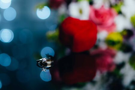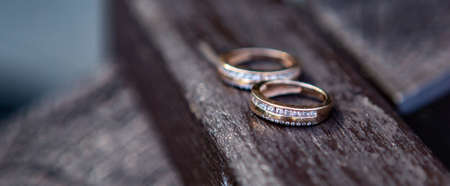 Wedding rings close-up macro shot.Wedding rings bride and groom