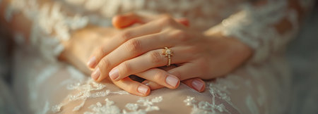 A Ring of wedding proposal on woman hand proposed to marry concept illustration generative ai